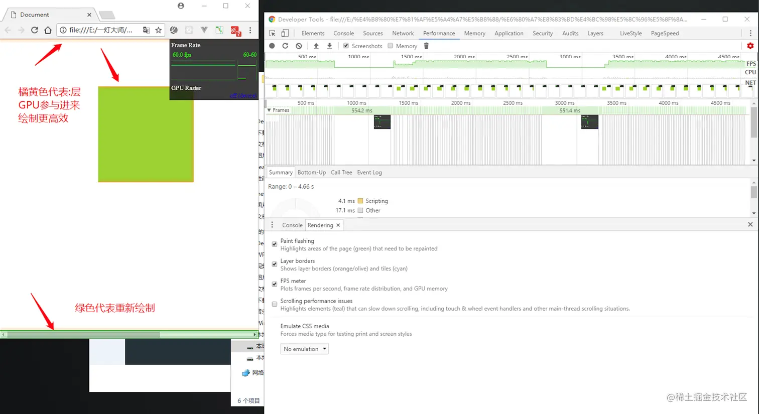 4.不要以为单独的层是万能的,单独层内部的元素触发重排、重绘的条件,一样会会发生重排、重绘