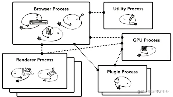 - GPU: 独立于其他进程的GPU处理任务,只有一个GPU进程,因为GPU处理来自多个程序的请求并将他们绘制在同一个页面中