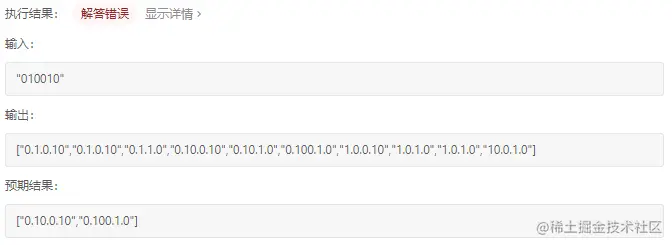 这是个新的类型,说的详细些。分割的过程还是使用回溯,当某一个地址的拼接不符合ip地址时,我们就即可尝试另外一种可能性即可,不过这个拼接有两个显著的规则,正好也可以作为我们递归的结束条件: