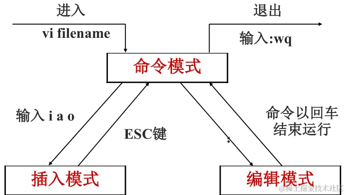 vim 主要有三种工作模式,分别是命令模式、插入模式和编辑模式,输入 vi 文件名 我们可以进入命令模式,输入字符 i或者a或者o我们可以进入插入模式,进入插入模式之后我们可以进行文件的内容修改,修改完成之后,可以输入 :wq 可以保存退出。这段描述出现的比如字符i、a、o等下面我们会详细描述。