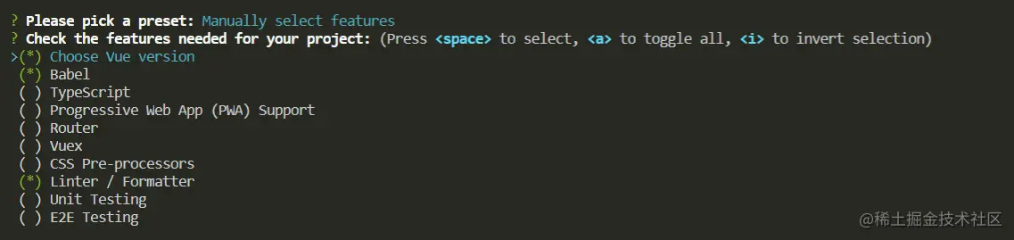 - 这里选项通过 ↑↓ 移动,空格选中,回车确定