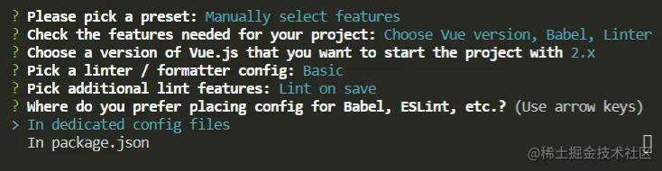 - ESLint Babel配置是否放在同一个文件,这里建议大家分开放,选择第一个