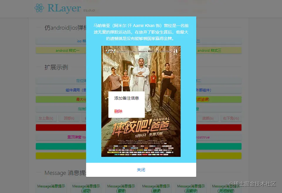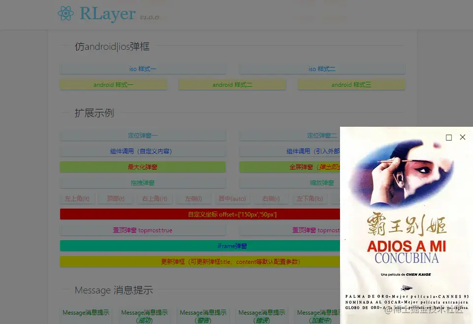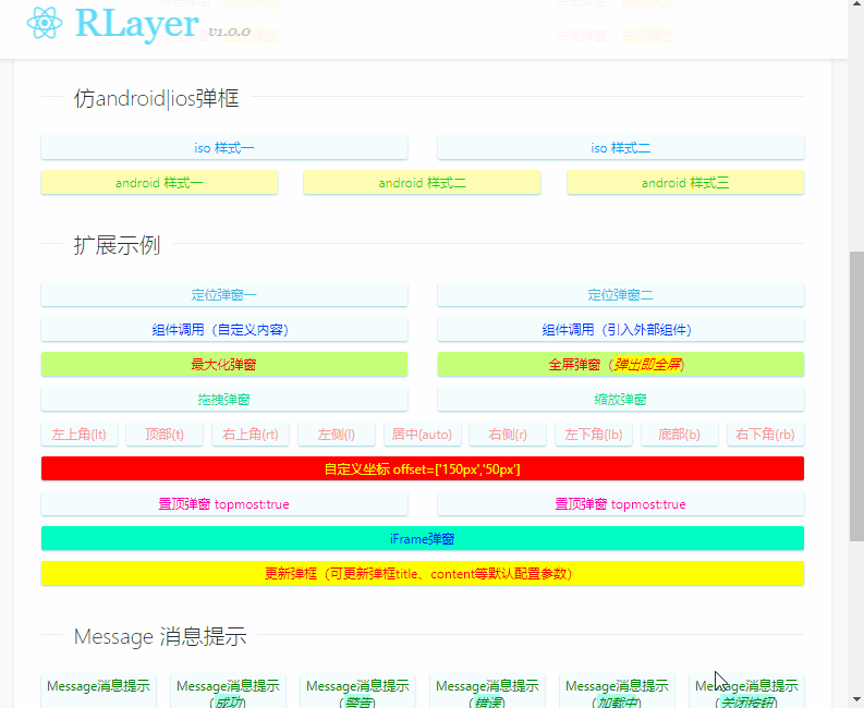 灵感:rlayer.js在开发及设计上参考了之前的vlayer自定义弹框组件。