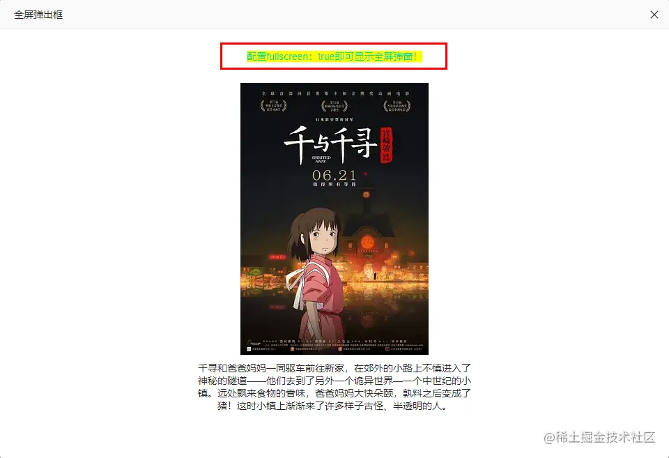 fullscreen: false, // {bool} 是否全屏弹框