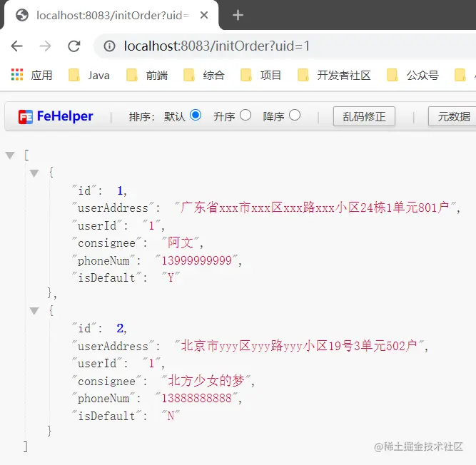 return Arrays.asList(new UserAddress(10,"错误测试地址",