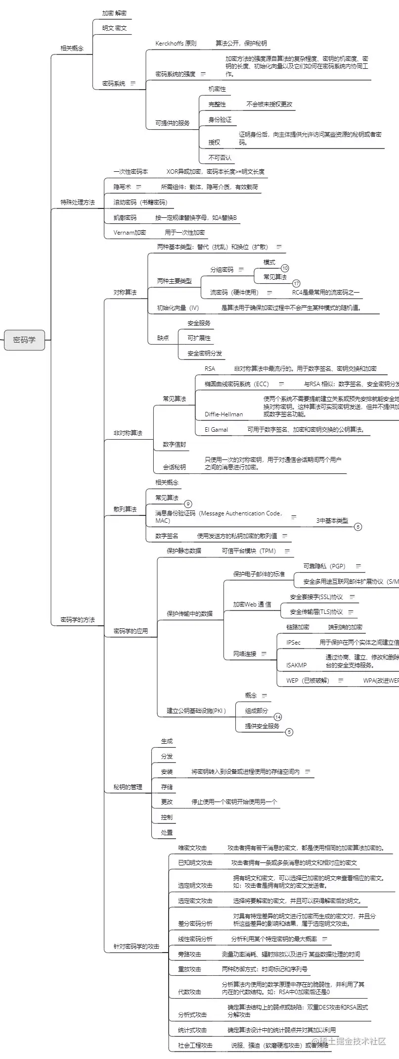 密码学是一门浩瀚的学科,无数的学者和研究人员数十年钻研往往也仅能取得非常微小的成绩。下图为笔者对密码学框架的部分理解,足以见得密码这门学科的博大精深。本文选取密码学学科中的一小部分内容进行介绍和演示。