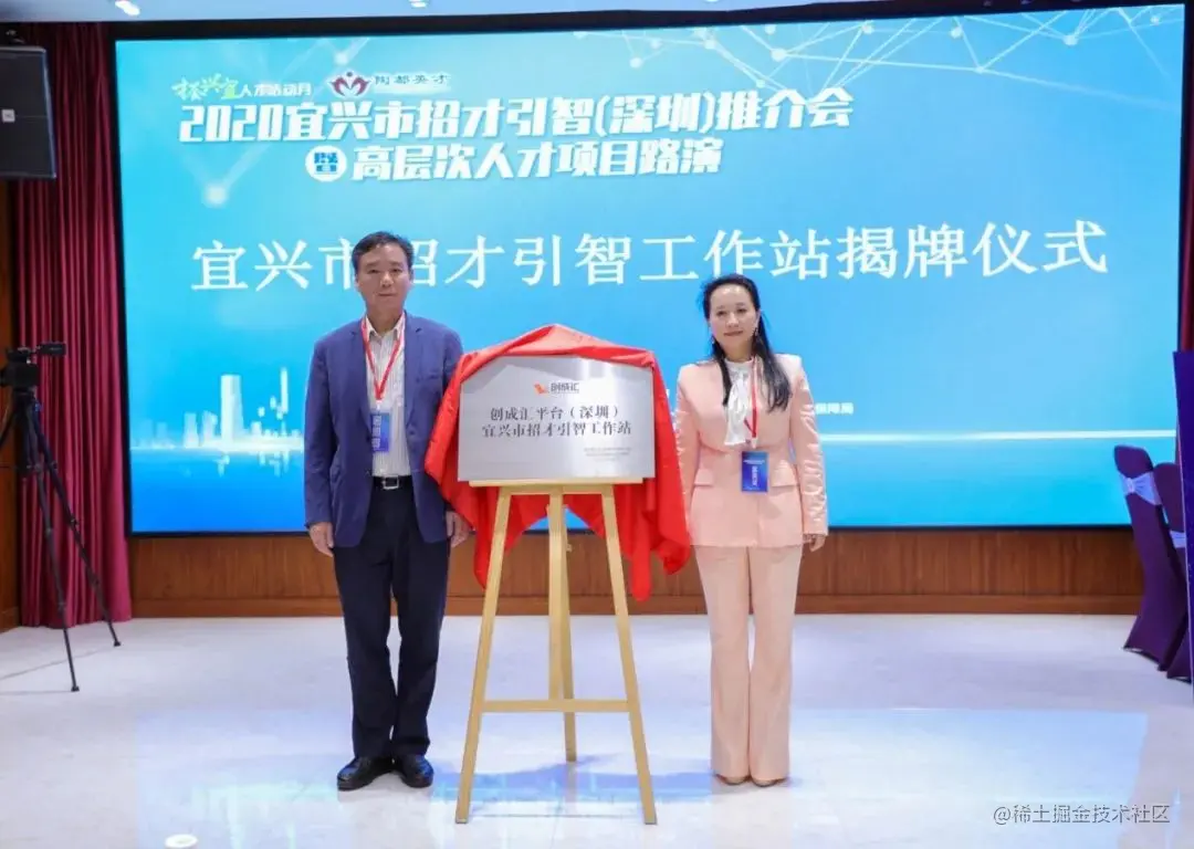(花强和李珈慧共同为创成汇平台(深圳)宜兴市招才引智工作站揭牌)