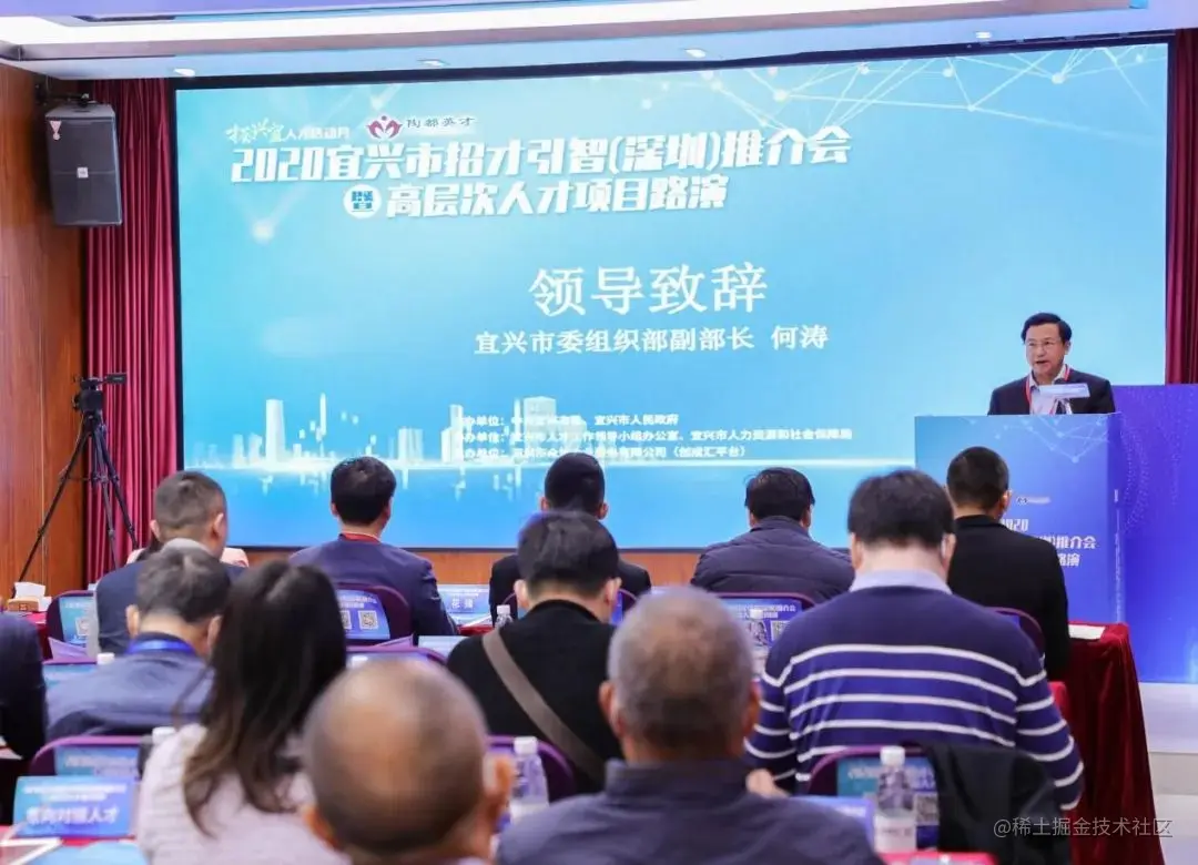 12月4日,2020宜兴市招才引智(深圳)推介会暨高层次人才项目路演活动在深圳举行。宜兴市委组织部副部长何涛,宜兴市科技局局长唐其君、人社局局长花强,创成汇平台董事长、深圳天使百人会常务副会长李珈慧等领导出席活动。