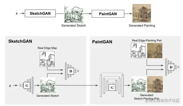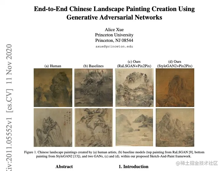 她收集了来自普林斯顿大学美术馆、哈佛大学美术馆、大都会艺术博物馆和史密森尼弗里尔美术馆的 2192 幅高质量的中国山水画训练自己开发的 AI 模型 SAPGAN(Sketch-And-Paint GAN)。