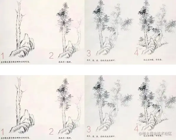 不过,AI 的作品总会与人类的创作有所不同,尤其是绘画这种需要独特技艺的创作。中国山水画的创作过程就很讲究,光步骤就有有勾、皴、点、染等等,更不用说下笔的技巧和力度之类的。