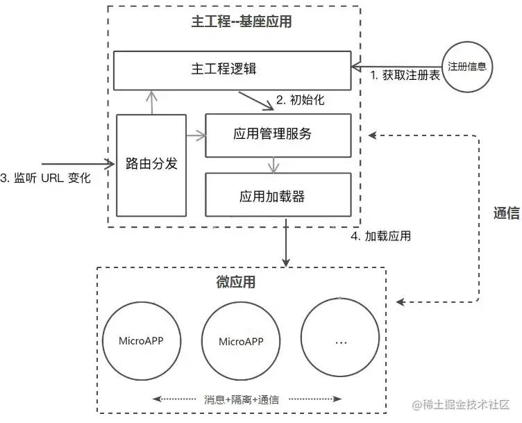 如上图,项目分为中心基座应用和一个或多个子应用,在基座应用中存放所有子应用的注册信息;通过在主工程中逻辑处理,对应用实现初始化;single-spa通过监听url的变化,实现路由劫持,应用加载器与子应用连接,通过子应用暴露的生命周期,实现子应用的挂载和卸载。
