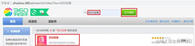本文以360手机助手为例,地址为:zhushou.360.cn/,相亲软件选择 3 个比较流行的,分别为:世纪佳缘、百合婚恋、有缘网,我们使用 Python 爬取软件评论区,看看用户评价情况。