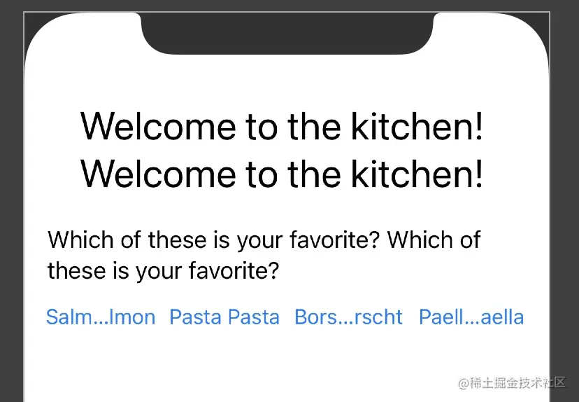 按钮上一句很短的英文,翻译成另一种语言可能会很长,需要更多的宽度。另外,有些语言字符的上下会有一些修饰符号,让整个字符比英语字符更“高”,比如缅甸语。因此控件高度最好也不要固定。 下面是一段缅甸语文本和相同字号的英语: ဤလင့်ခ်ကို ပံ့ပိုးမပေးပါ This link isn't supported 使用 Auto Layout 来计算文本控件的尺寸,不要设置固定长度约束。如果使用 Swift UI,避免显式设置 frame 为绝对值。