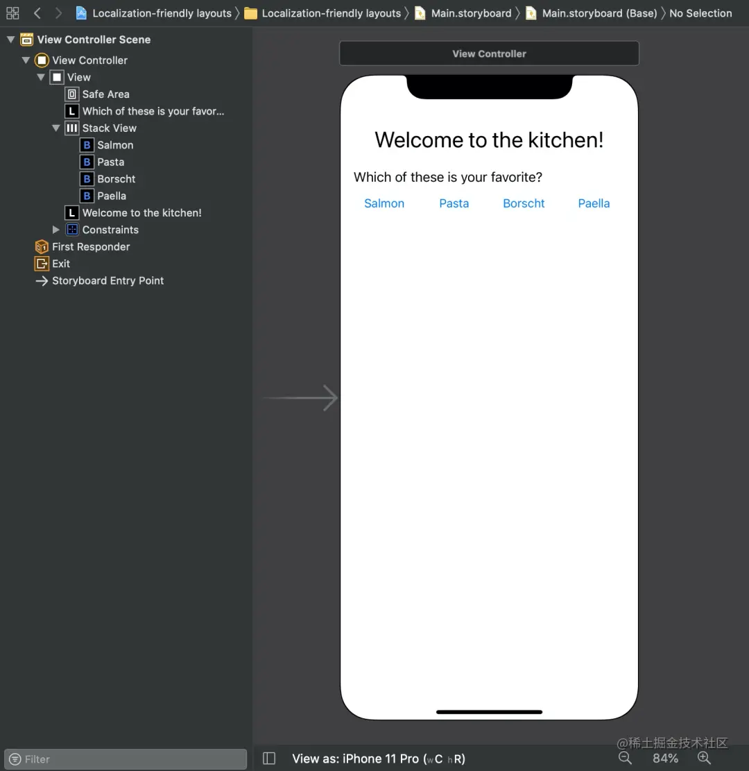 将 Storyboard 上的 UIStackView 改成这个 ReadjustingStackView,然后打开Edit Scheme -> Options,将 App Language 设置为 Double-length Pseudolanguage,再启动调试: