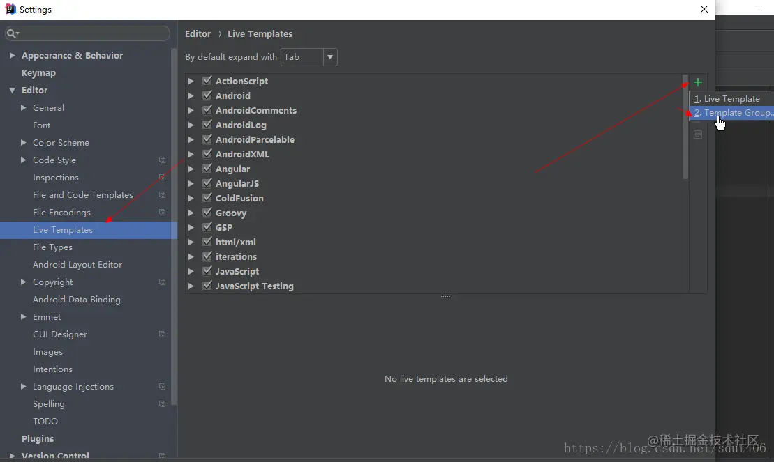 2.点击右边的”+“号,选择Template Group