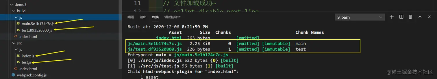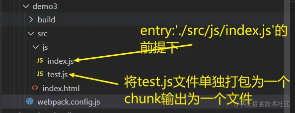 // 将某个文件打包输出去,并在html中自动引入该资源