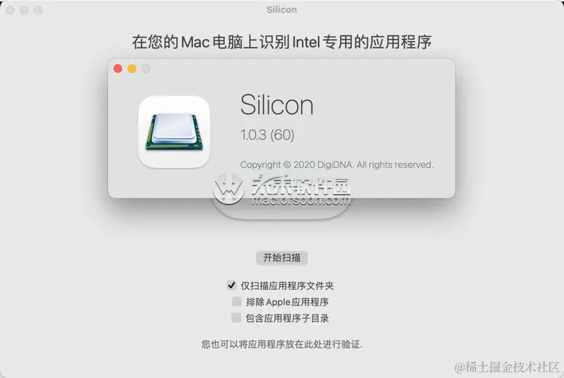 扫描您的macOS应用并显示其支持的CPU架构。专门用于检测提供(或不提供)本机Apple Silicon支持的应用程序。