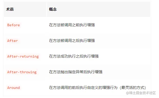 Advice注解一共有五种,分别是: