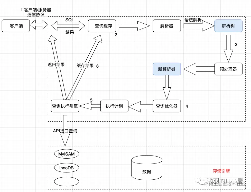 回头总结一下MySQL整个查询执行过程,总的来说分为6个步骤: