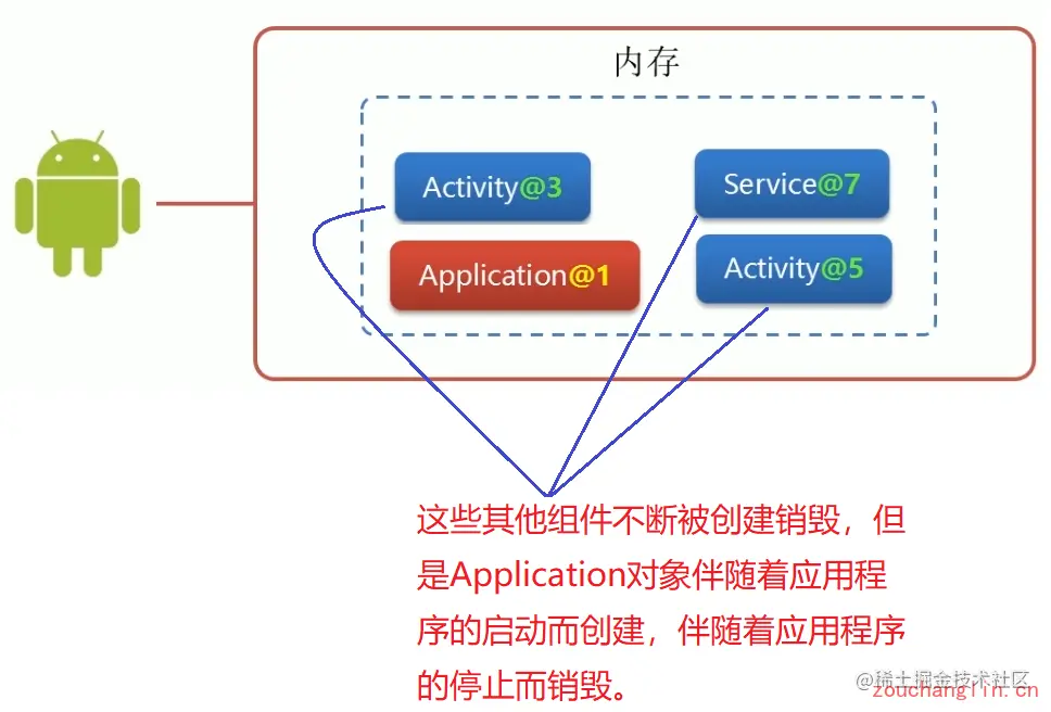 Application对象诞生于其它任何组件对象之前,并且一直存活,直到应用进程结束。Application对象由Android系统管理,它的回调函数都运行于UI线程。