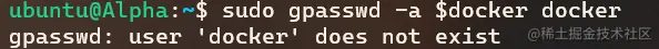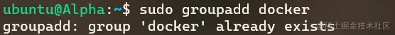 sudo grounpadd docker- 如果之前不存在 docker 用户组,则会被创建