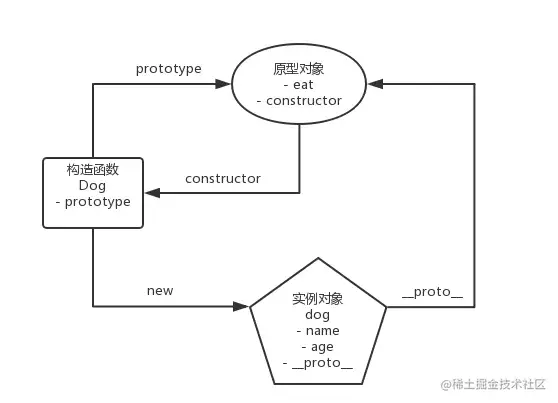 在 JavaScript 中,每个构造函数都拥有一个prototype属性,它指向构造函数的原型对象,这个原型对象中有一个 constructor 属性指回构造函数;每个实例都有一个__proto__属性,当我们使用构造函数去创建实例时,实例的__proto__属性就会指向构造函数的原型对象。