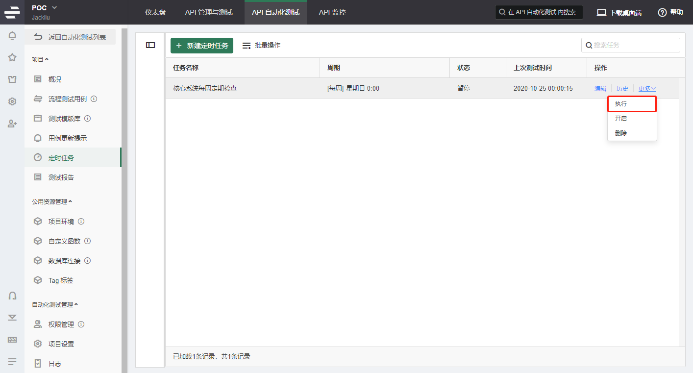 同时如果希望立即执行某个定时任务,进入定时任务列表页,点击定时任务操作栏的 执行 按钮即可。