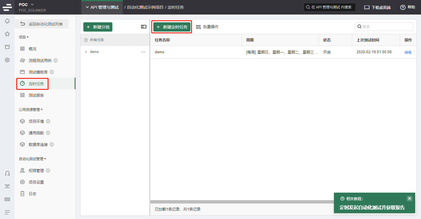 这几年发现对于接口测试,自动化测试的需求越来越高,而其中定时测试又是一个比较常用的点。今天用Eolinker演示一下定时测试的流程,更多功能自己试试更好哈哈。 使用地址:www.eolinker.com