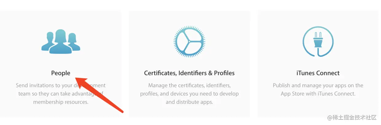 一、打开iOS公司开发者账号的账户:developer.apple.com/account/ ,点击people: