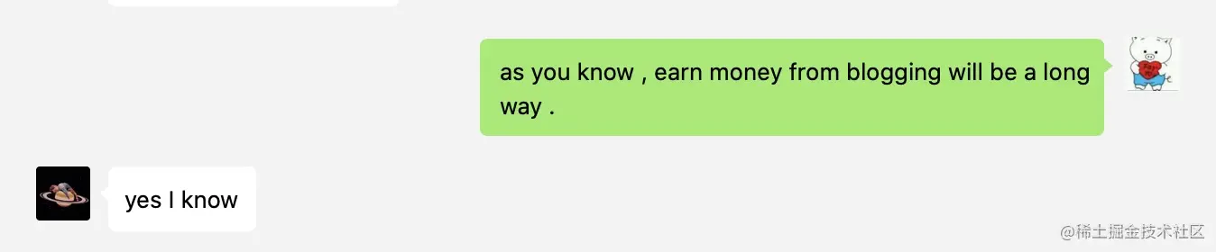 就拿我个人而言,因为写博客获得了出书的机会,因为写博客获得过一次不错的 offer,因为写博客有人问是否接私活,因为写博客认识了很多未曾出现在生活中的人(比如,努曼)。那么,是否还要问写博客是否能够赚钱吗?