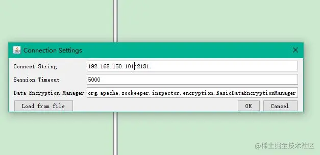 点击左上角连接按钮,输入zk服务地址:ip或者主机名:2181