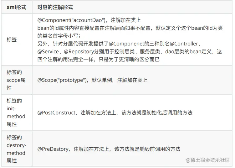 xml中标签与注解的对应(IoC)