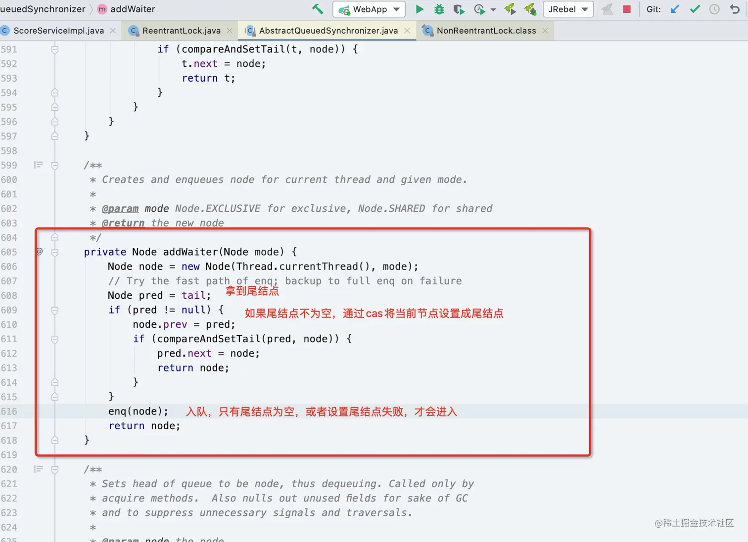 参数为addWaiter(Node.EXCLUSIVE),addWaiter顾名思义是添加此节点到等待队列中,