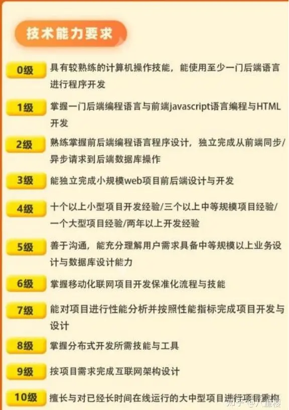 (初级的全部具备,高一级的需要全部具备初一级的全部技能,下同,我就不再