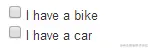 <input type="checkbox" name="vehicle" value="Bike">I have a bike<br>