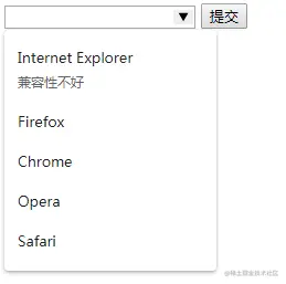 <option value="Internet Explorer">兼容性不好</option>> <option value="Firefox">