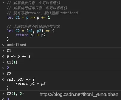 // 上面的条件不符合即这样定义 let C2 = (p1, p2) => { return p1 + p2 }