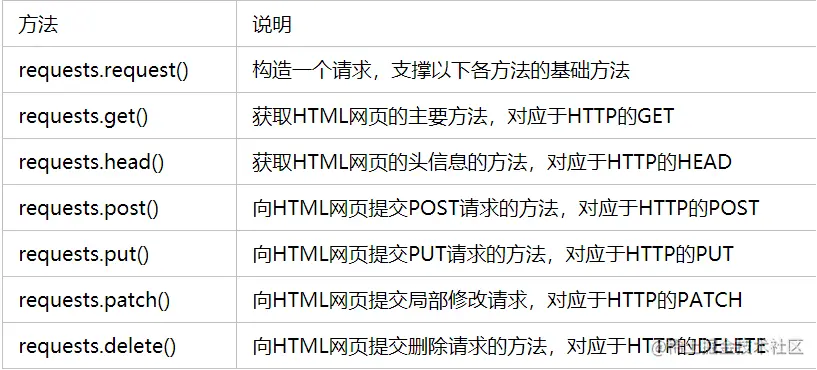 Requests库的七个主要方法: