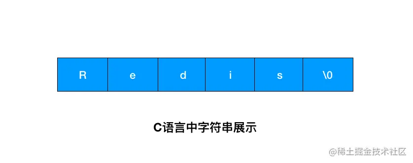 这个图是字符串在 C 语言中的存储方式,想要获取 「Redis」的长度,需要从头开始遍历,直到遇到 '\0' 为止。