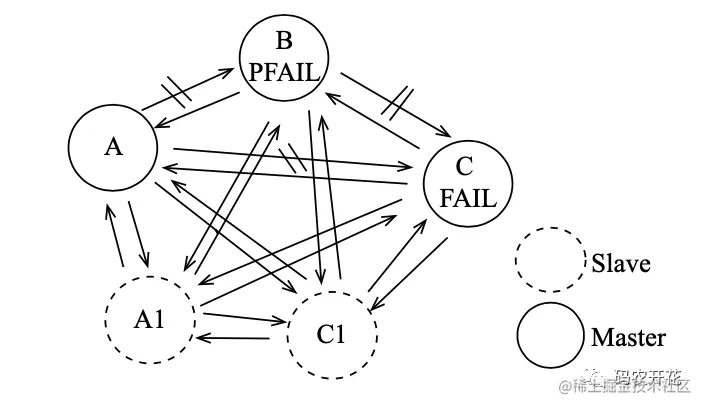 - 节点间定时互 ping ,当超过一半 Master 判定某节点失败,则标记为 FAIL,且会向集群广播节点下线的消息。如下线节点是带有槽的主节点,则要从它的从节点选出一个替换。