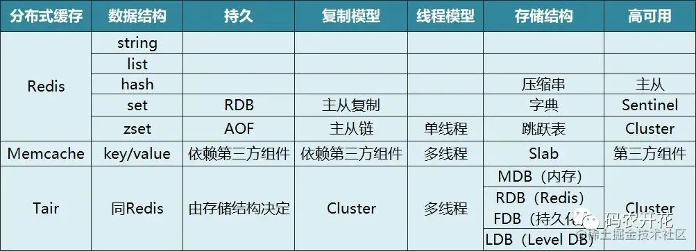 Tair:阿里开源,跨机房、性能随结点添加线性上升、适用大数据量。Tair 还有三种引擎。