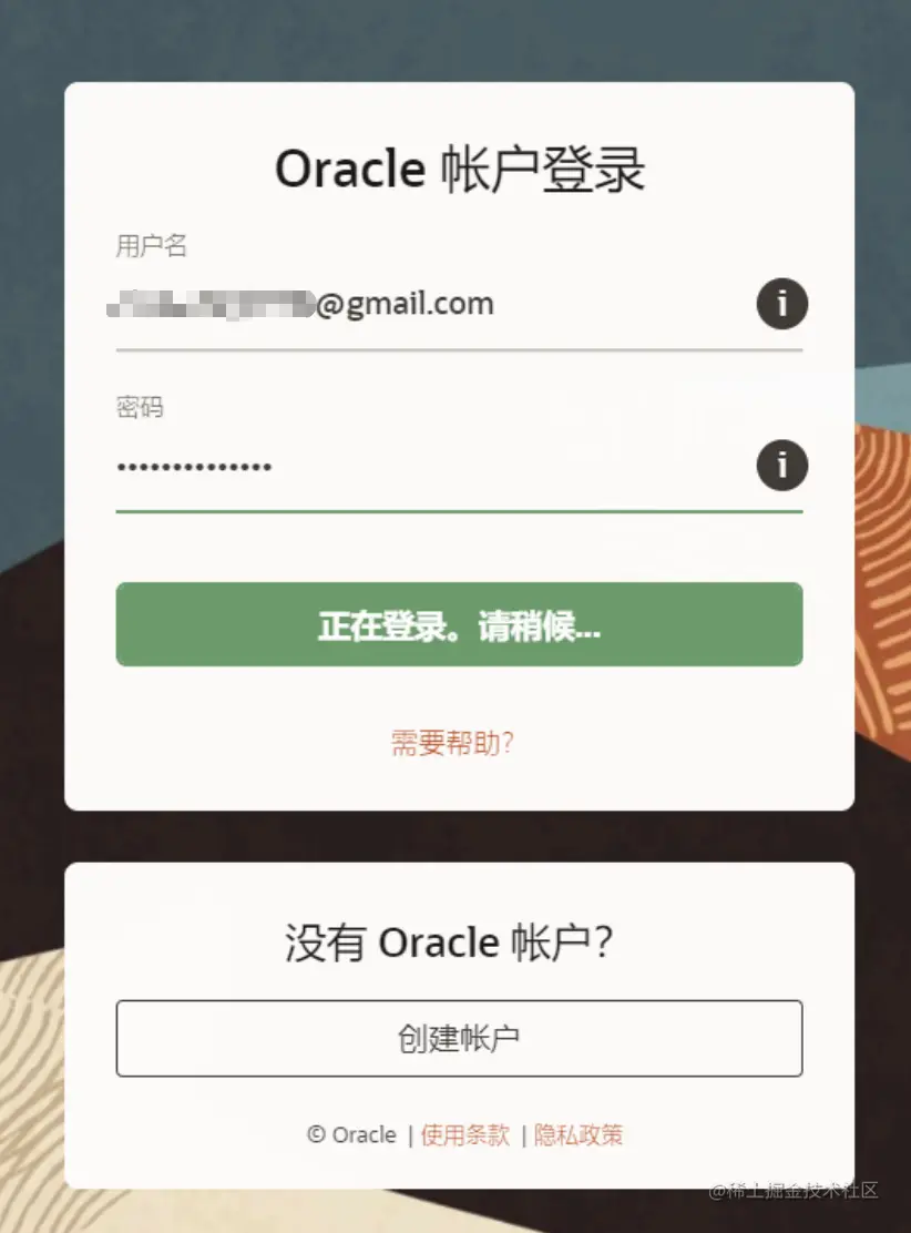 - 这里需要登录甲骨文账号,没有的小伙伴自行注册