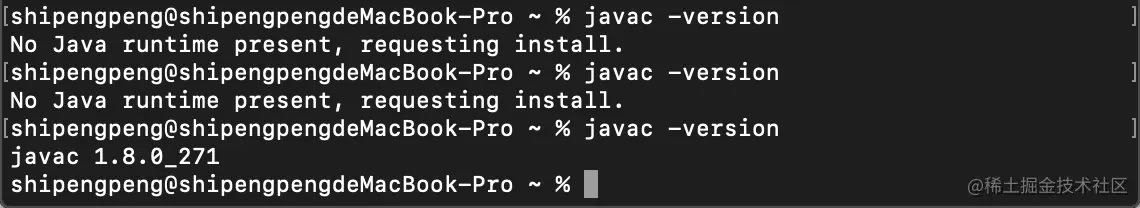 javac -version来查看你当前安装的 JDK 版本,如果提示No Java runtime present, requesting install.,说明需要电脑没有安装JDK或者版本不对,需要重新下载安装Java SE Development Kit (JDK)