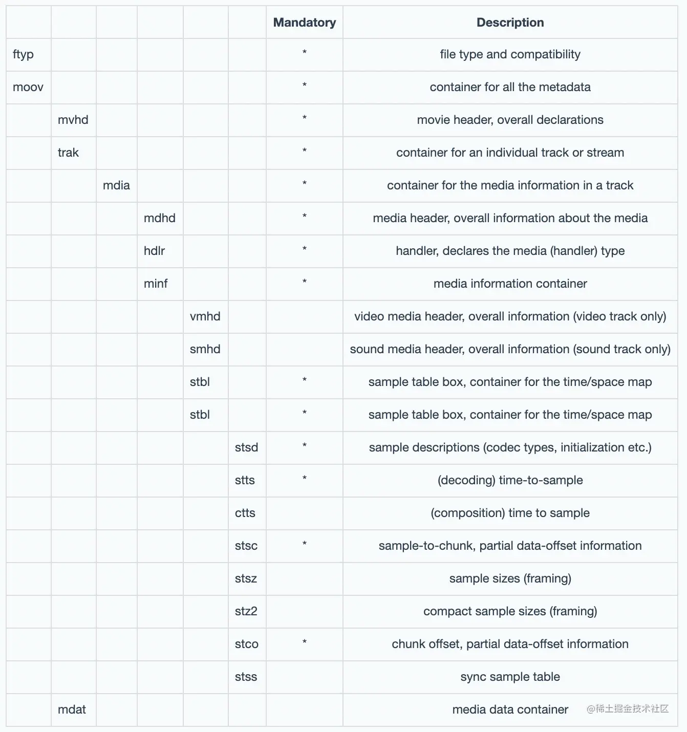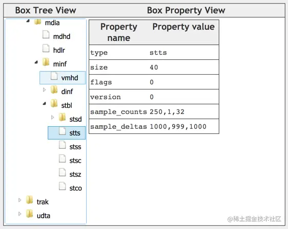 - mdat:Media Data Box,存放实际的媒体数据,一般有多个;
