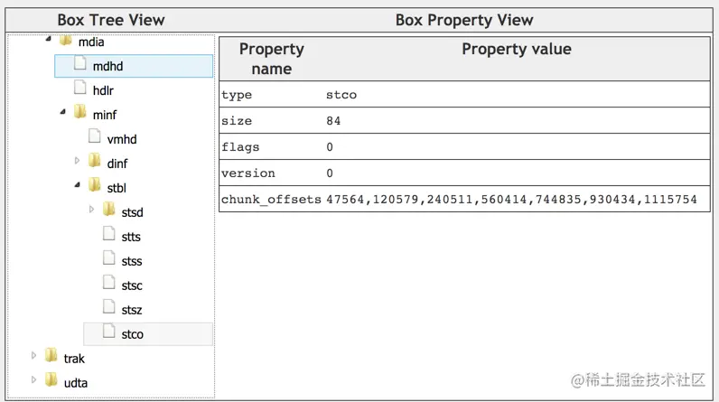 - box body:box的数据部分,实际存储的内容跟box类型有关,比如mdat中body部分存储的媒体数据。