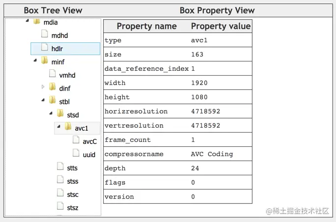 在Box的基础上,扩展出了FullBox类型。相比Box,FullBox 多了 version、flags 字段。