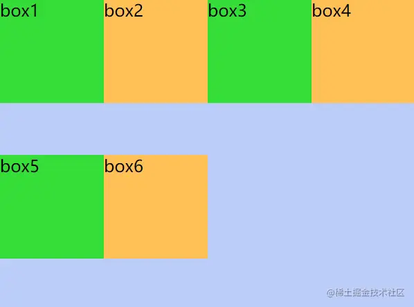 因此,box1:50px, box2:150px, box3:100px,注意,当所有的基准宽度总和超过父容器的宽度时,某些子元素的基准宽度会收缩,因此有换行需要的还是要换行