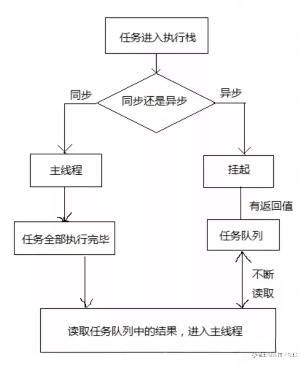 当js引擎遇到一个异步事件后不会一直等待返回结果,这个事件会先挂起,继续执行执行栈中的其他任务,直到这个异步事件的结果返回,JS 引擎会将这个事件放入与当前执行栈不同的一个队列中,我们称之为事件队列。