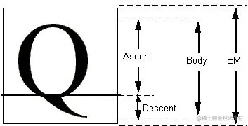 在 TrueType 字体文件中,点的位置以字体单位或 FUnit 表示。所谓 FUnit,就是 em 方块中最小的度量单位,而 em 方块则是用于衡量字形大小以及对齐字形的一个虚拟方块。通常,一个字形的 em 方块包含字形的全身长,再加上排版时没有额外铅空条件下避免行与行过于拥挤的额外空间。