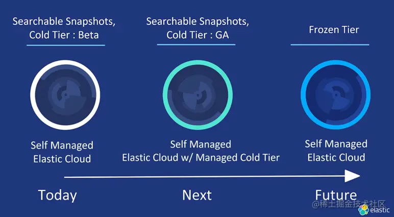 当前 7.10 版本的可搜索快照功能的为 Beta 版,社区里也给出了该功能的路线图,会在将来的版本中实现完全的计算存储分离,直接去访问 S3/COS 中的索引数据完成查询, 而不是像当前这个版本需要先恢复到本地磁盘中。